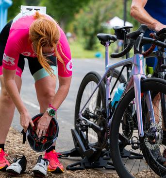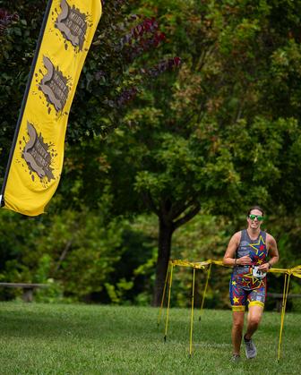 Run -- 2 miles through town streets; you'll cut through the grass into the park for the last 100 meters, go through the start/finish, then head to the bike transition. **Note: While there is plenty of space for your bike and equipment in the transition area, we do not provide bike racks. Click here for plans for a simple DIY rack if you want to bring your own!