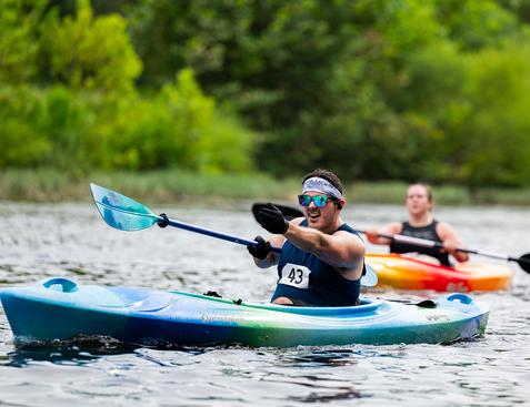 Note: The race will be held rain or shine. The paddling portion will be omitted in the unlikely event of high water (6 ft or over) making this event a duathlon (cycling leg will be lengthened by approximately 4 miles). Current river levels can be viewed here.